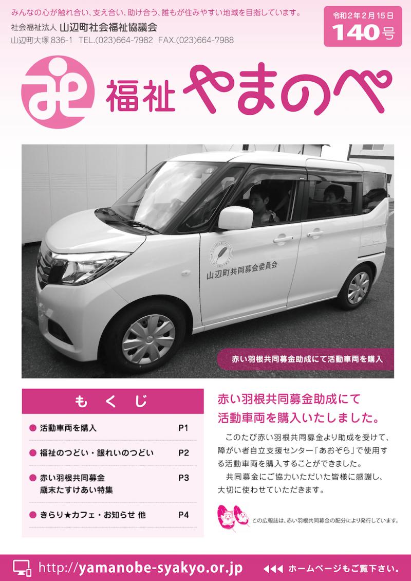 山辺町社会福祉協議会・広報誌「福祉やまのべ」140号赤い羽根共同募金についてや、きらり★カフェの様子「福祉のつどい」や「銀嶺のつどい」の様子などを掲載しております。http://yamanobe-syakyo.or.jp/