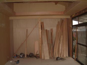 天井の一部は高さを上げ、床や壁は構造用合板か石膏ボードを貼り付けました。