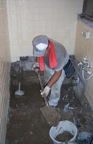 タイルのお風呂を、職人さんが解体していきます。