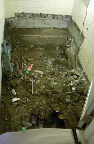 解体が終了しましたら、新しく設置するシステムバスに合った給水、給湯、排水の配管作業がはじまります。