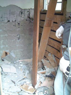 それに伴い、既存の壁を解体していきます。正面は土壁です。