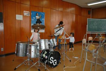 ドラムをたたく、子供達が