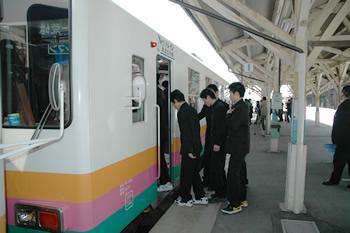 山形鉄道開業以来初!とのことで、記念に写真をとる市民の方