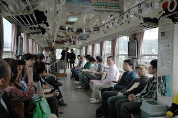 ▼斎藤弘山形県知事スウィングガールズ列車に乗る!