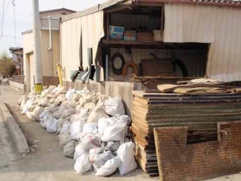 <8:30〜15:00、がんばった1日の成果は、この他に土のう袋50袋以上、瓦礫多数>