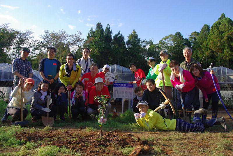 鮭のちゃんちゃん焼きをみんなで食べた後、記念植樹。