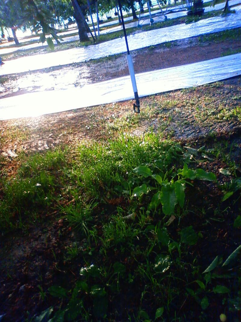 中央の白い筒状の下部にマイクロスプリンクラーの回転子が付いており、半径3.5メートルの範囲に細かい水滴を飛ばします。自然な降雨に近い灌水が行え、地面と枝の間を飛ぶので葉や実を濡らさずに水やりが出来るすぐれものです。私のすべての園地に総数で六百個が付いており、同時に総ての面積に灌水が可能なのはもちろん、一列ごとの部分灌水や液肥をを混入して灌水することも出来ます。私は果樹、とくにさくらんぼ栽培には必要不可欠な設備だと思っています。