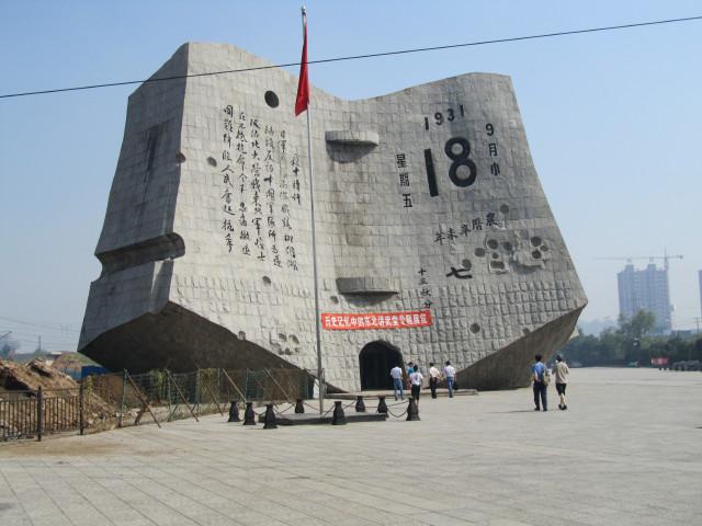 その遼寧賓館で朝食を済ませ、瀋陽故宮に向かいました。一時間程で一回りし、ただただ人の多さに疲れてしまいました。その後に「9・18」記念館を見学しました。写真は記念館のモニュメントで、しかもこの記念館の半地下構造の入り口になっているのです。展示物を丹念に見て回りましたが、こういった展示館のお決まりのような、反日思想のプロバガンダなのかな、という思いも抱きました。