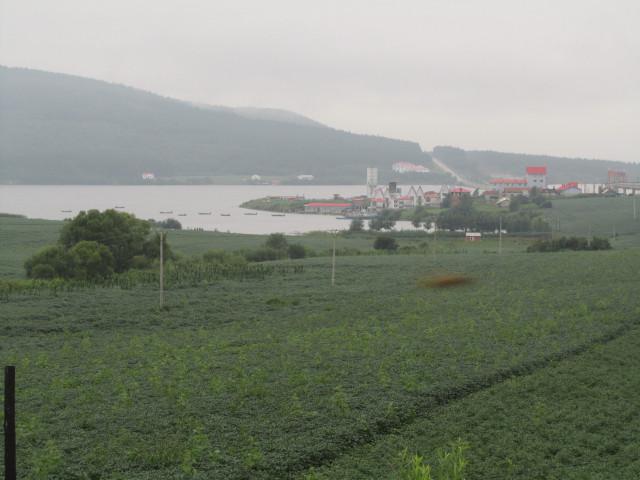 写真は散歩途中から鏡泊湖を眺めたところです。