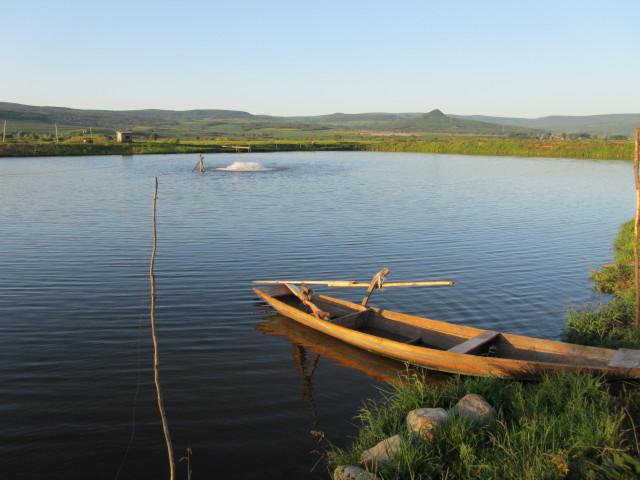 写真は黄君の両親が管理している養魚池です。この写真の右手に両親が住む15坪程の家があります。