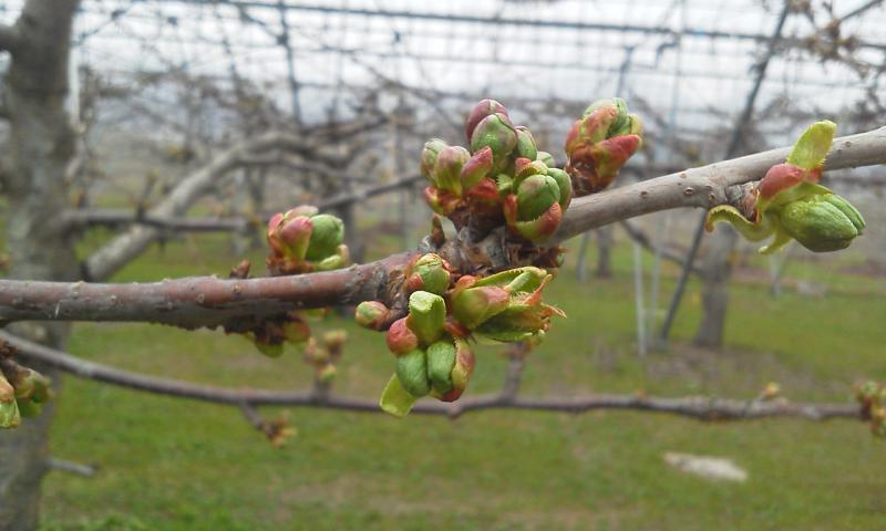 元々は八個位の花芽が有ったのですが、摘蕾作業で佐藤錦の場合は全ての花芽を三個にしました。