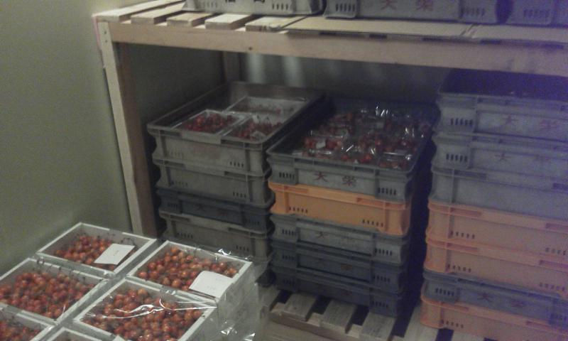 今回出来上がった作業所の心臓部と考えている冷蔵庫の中に昨日から紅秀峰、紅てまり、大将錦、南陽、レーニアなどを貯蔵し始めました。