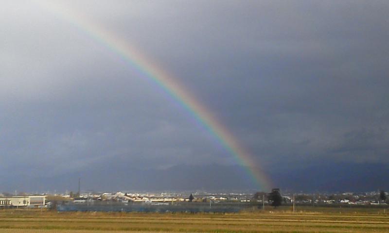 冬支度の作業を行っていた昨日、小雨の合間に北東の空に鮮やかな虹が架かりました。