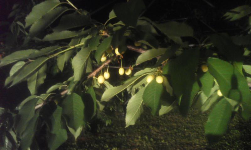 ようやく黄変し始めたダイアナブライトを照らすためにライトを点けている訳ではなく、灌水のためのマイクロスプリンクラーの元栓のバルブを閉めるために車のライトを点灯しています。