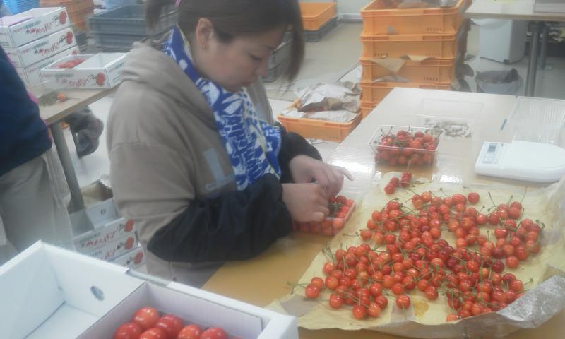 すべては、さくらんぼの品質保持のためなので、作業する身には少しつらい作業条件ですが、短期間の作業にそれぞれが集中できるように考えています。