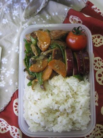 ○ピーマン・にんじん・きのこ・ソーセージの味噌炒め