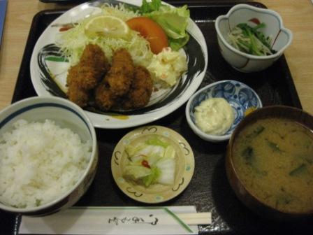 米沢市内の定食屋さん「定吉」でカキフライ定食。