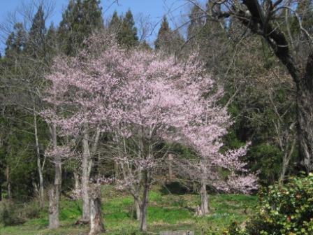裏の、エドヒガンザクラが鮮やかに咲いており、これを愛でて喜んでます。