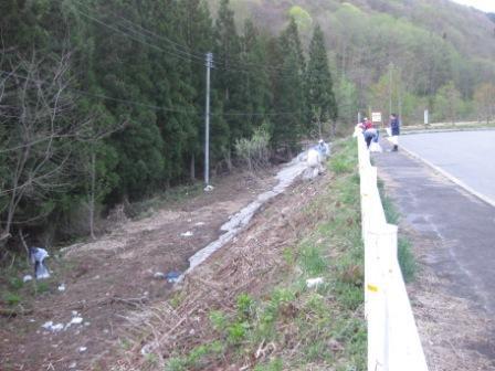 大峠トンネルの手前にある、花壇のある待避所をゴミ拾い。