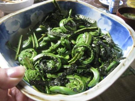 このところ、少し暖かくなり、山の雪も消えたらしく、「こごみ」を頂戴します。