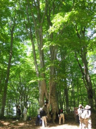 画像は、標高950メートル地点のブナ林の前。