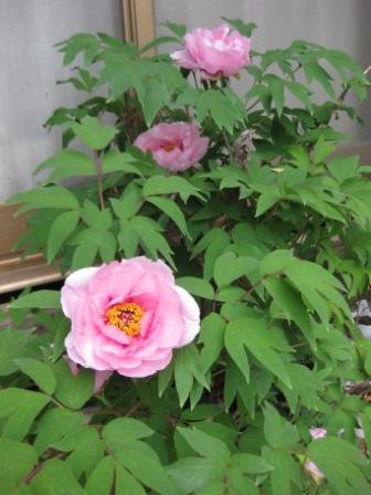 お寺の軒下に植えている、牡丹の花が咲きだしました。