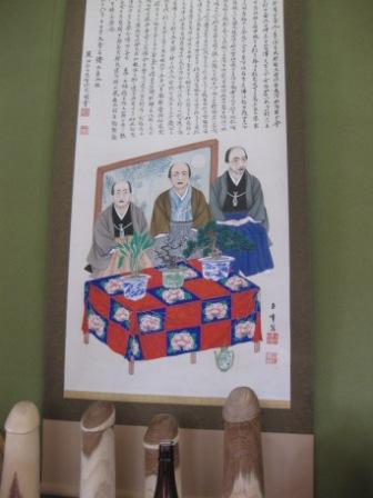 最初に、財団法人 田沢自彊会の礎を築いた明治時代の田沢地区の三つの大字の肝煎り(代表者) 伊藤三翁の掛け軸に礼をして会を始めます。