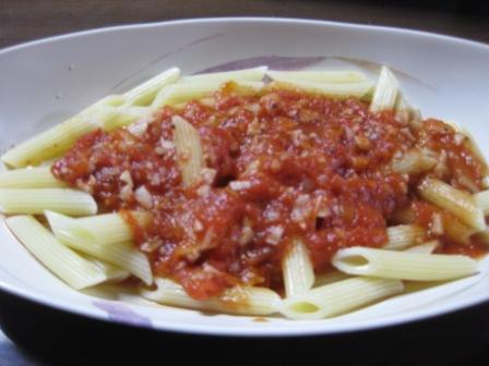 ところが、台所でパスタとトマトを発見。
