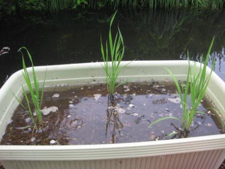 サナブリで供えられた苗をいただいてきて、うっかりして瀕死の状態にさせてしまったのですが、なんとかミニ水田で生きついたようです。