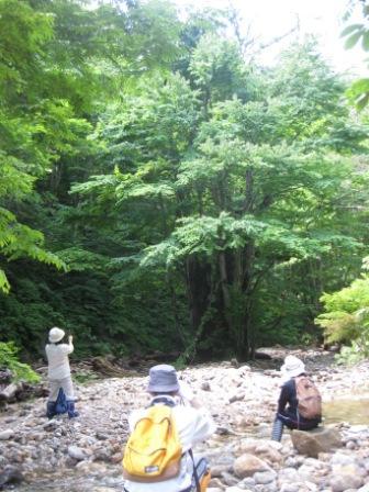 珍しく、ぎらっと暑い日差しの中を歩き、藪をかき分けて沢に降りると、すーっつと心地よい風が吹いてきました。