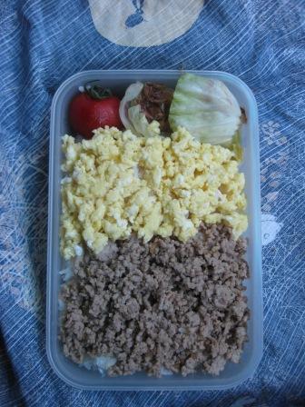 挽肉そぼろには、生姜を混ぜ、暑くても食欲が出るように、というわけです。