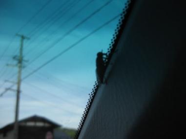 画像は、20日の夕方、車の中に不穏な影。