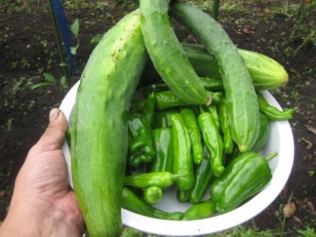 朝、伸び放題に草が伸びた畑の草をむしり、収穫。