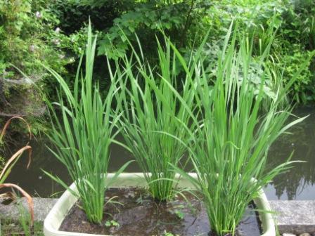 池の縁に置いている、プランター水田の稲もだいぶ丈が出てきました。