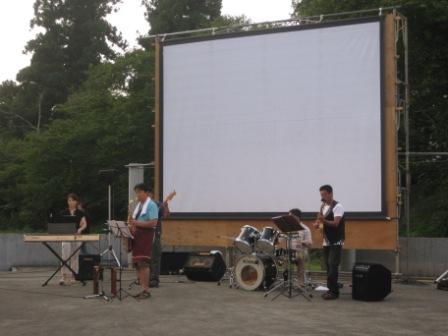 さて、前の日記からの続きで、フレンドリー野外映画会の上映前に、バンドの皆さんの演奏。