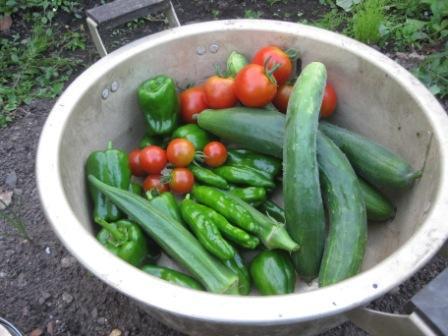 畑から、また少々収穫をして、さてなにをして食べようか、なにを作ってもらおうかな…。