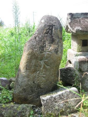 この草木供養塔は、東側公民館という地域公民館のある場所の一角に、他の石塔や祠などと並んで立っている。