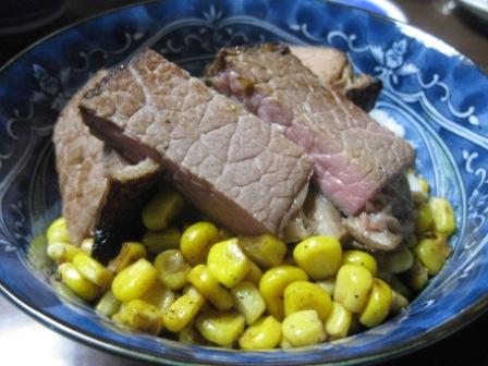 調理済みのローストビーフなので、暖めるだけでよかったのに、焼いたのでけっこうかたくて食感が全然別なものになっちゃったんですね。