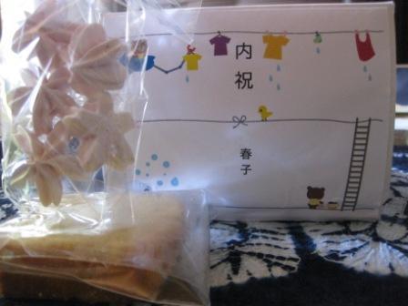 出産の内祝いに手作りのお菓子を頂戴しました。