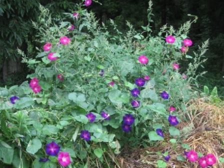 さて、畑の端にある肥塚(こえづか)に、アサガオが咲いて、そこがパァーッと明るくなっております。