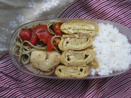 このサラダスパはバジルが練りこまれているものなので、薄いダークグリーン色ですね