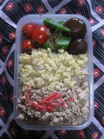 甘じょっぱいそぼろがご飯に味が染みだして、美味しくなります。