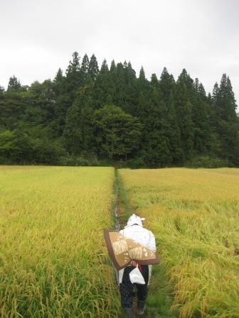 そのうちの一軒のばあちゃんに先導頂いて田んぼの畦道を歩いていきます。