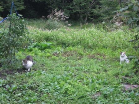 天気がいいので、猫っだは外で遊んでますね。