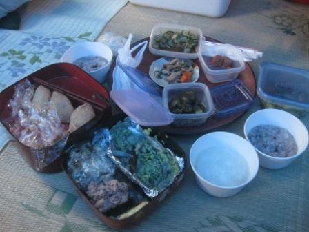 さて、画像は9月28日、大荒沢山中のお不動様のお堂での朝食。