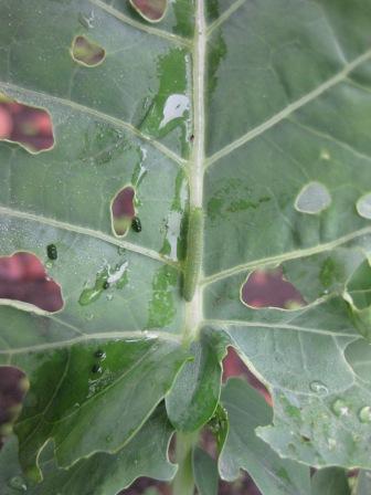 畑に行ってみたら、ブロッコリーの葉っぱが網目のように穴が開いていた。