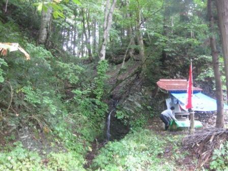 その時、大荒沢に向かう前に、山のふもとの滝のあるところに、この不動尊を祀ったと伝えられています。