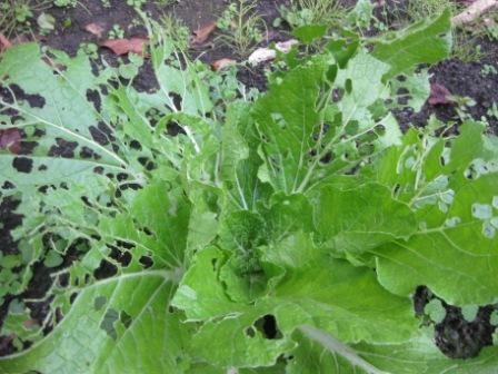 裏の畑の白菜、盛大に虫が食ってくれました。