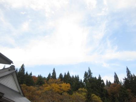 裏山と空を見ると、風が強く雲が流れているのがわかります。