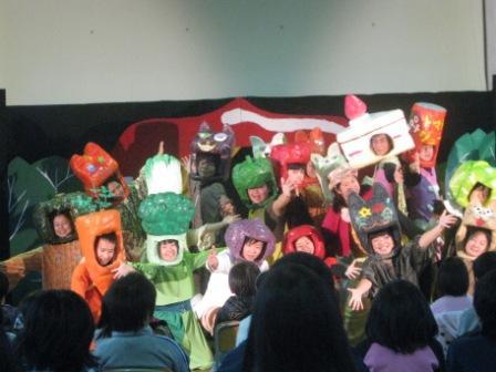 22日(月)、地元の三沢西部小学校体育館で、置賜農高演劇部に「置農食育 子どもミュージカル 2010」を演じていただきました。